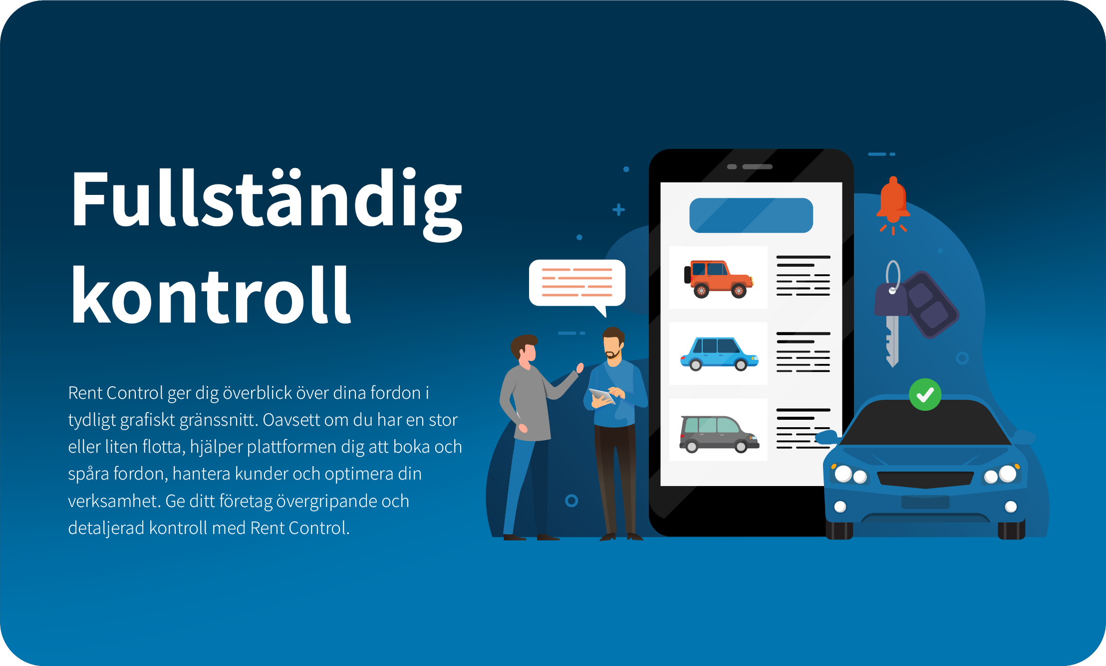 Rent Control gör det enkelt för dina kunder att boka hyrbil hos er. Med bara några enkla steg är allt bokat, betalt och klart. Vi vill förenkla processen för både er och era kunder, för en smidig och effektiv upplevelse.