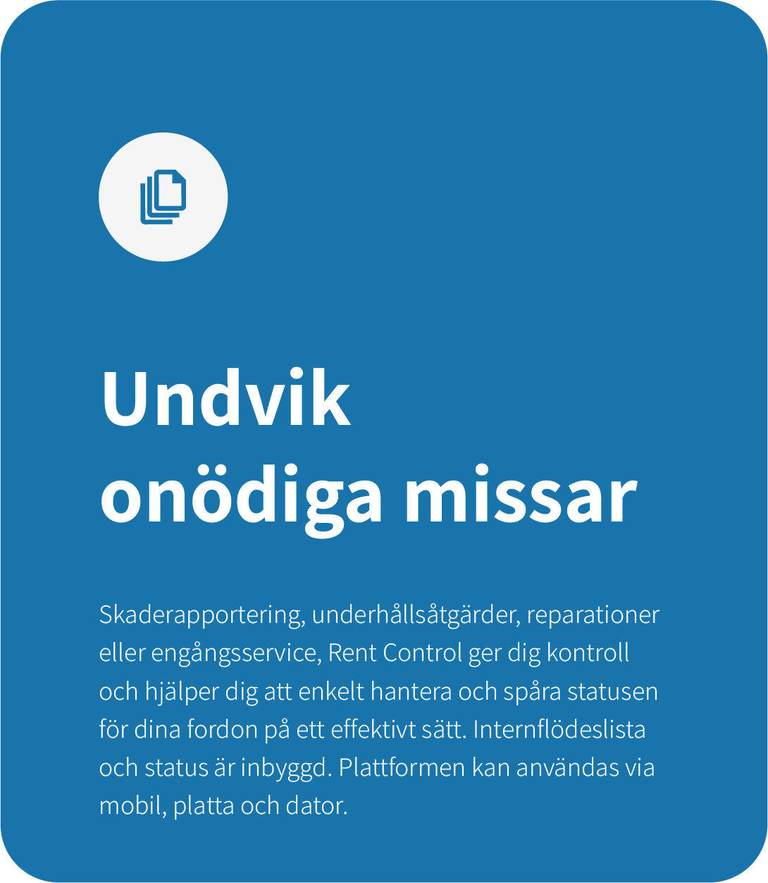 Rent Control är en pålitlig och stabil molnbaserad plattform. Du hanterar din biluthyrning smidigt och utan avbrott. Backup och drift är inkluderat i produkten.